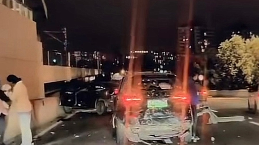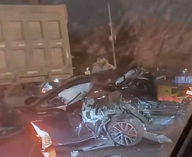 事故发生在昨天傍晚5时40分。当时正值下班晚高峰,蕰川公路北向南方向车辆通行较为缓慢。正当机动车有序通行时,一辆快速行驶的轿车突然在车流中穿插。当该车行至蕰川公路北向南方向近S20外环路段后,车辆猛地撞上前方正常缓行的轿车。由于被撞轿车前方是一辆大型卡车,撞击产生的冲击使轿车前后受损,车尾损伤尤其严重。肇事车辆在撞击发生后被弹出数米,在此过程中又撞上其他正常行驶的车辆。据途经现场的市民介绍,事发路段上满是碎片,被卷入事故的车辆均出现不同程度的受损。