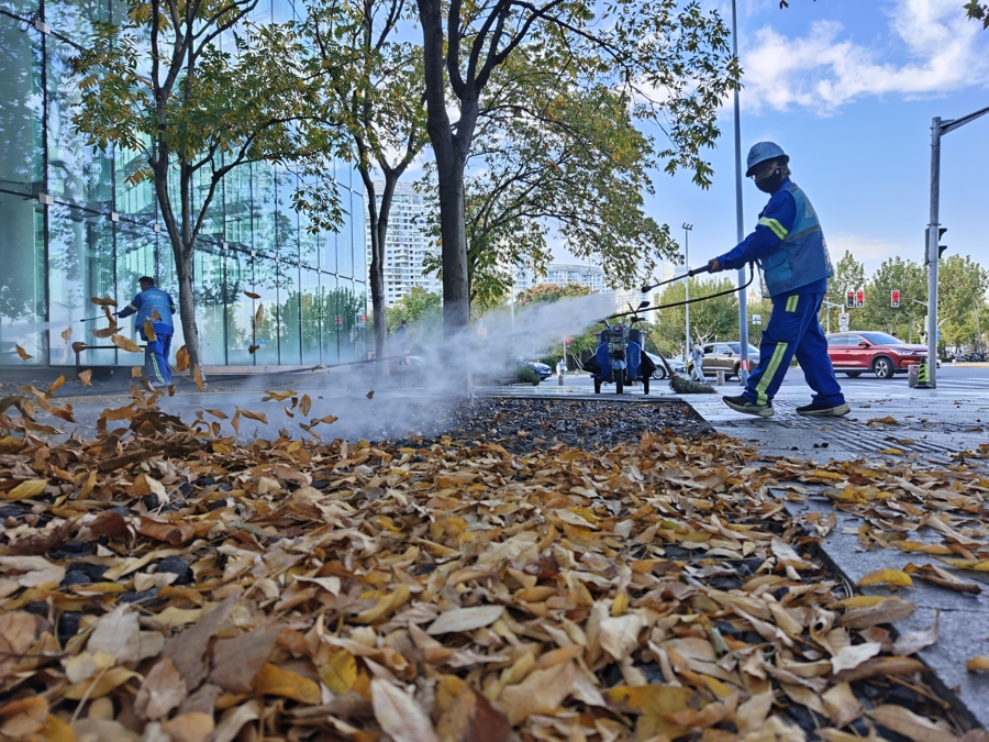 落叶不扫,并非对落叶置之不理,而是有选择性地进行精细化养护清扫,对落叶中的垃圾进行捡拾,从大面积清扫变成小扫帚清理和火钳捡拾为主,这对环卫作业提出了更高的要求。根据实际天气情况,环卫部门还会利用机械化设备进行辅助作业。如遇降雨、雾霾,则会对道路上的落叶进行全面清扫,确保落叶不遮蔽雨水口,不影响市民通行,确保道路安全畅通。
