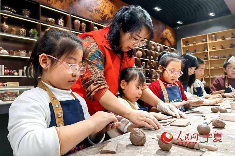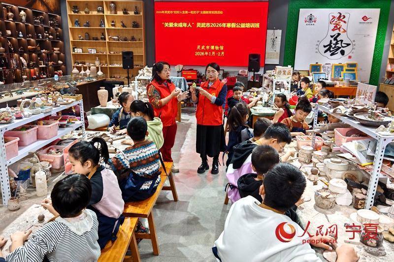 人民网银川1月28日电 (记者阎梦婕)近日,宁夏灵武市2026年寒假“关爱未成年人”灵州瓷非遗公益培训班在市博物馆开班。孩子们在非物质文化遗产代表性传承人张思华的指导下,亲手体验揉泥、拉坯、剔刻等工序,制作出笔筒、墨盒等文房用具,在实践中感受千年瓷韵。